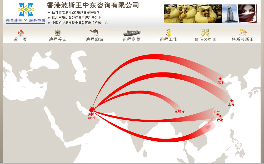 香港波斯王國際實(shí)業(yè)有限公司是來自迪拜AL-JUNMA 旗下的一家集貿(mào)易 旅游 展會為一體的多元化外資企業(yè). 本網(wǎng)站是專門為去迪拜商務(wù) 旅游 展會的各界朋友而建立的服務(wù)平臺.