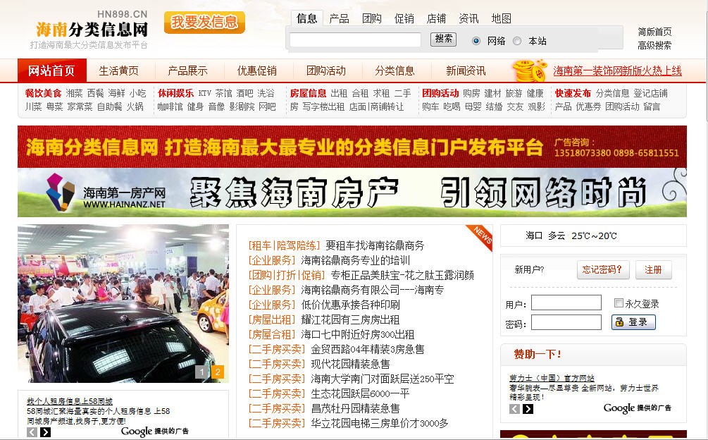 海南分類信息網(wǎng)是一個提供免費發(fā)布房產(chǎn)信息,招聘求職,二手買賣,本地服務,海南美女,社區(qū)活動,城市資訊,??诜课莩鲎?免費中國廣告,海南房產(chǎn),的全方位分類信息平臺