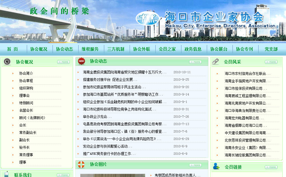 ??谑衅髽I(yè)家協(xié)會(huì)(下稱“協(xié)會(huì)”)是經(jīng)??谑惺形?、市政府有關(guān)部門(mén)同意,在市民政局登記注冊(cè),于2007年10月18日正式成立的具有獨(dú)立法人資格,目前是由??谑蟹菄?guó)家機(jī)關(guān)的企業(yè)事業(yè)單位中具有較高思想文化素質(zhì)和一定經(jīng)營(yíng)管理經(jīng)驗(yàn)的主要負(fù)責(zé)人為主體,通過(guò)友好協(xié)商,自愿組成的非營(yíng)利性經(jīng)濟(jì)類唯一一家綜合性的社會(huì)團(tuán)體。
