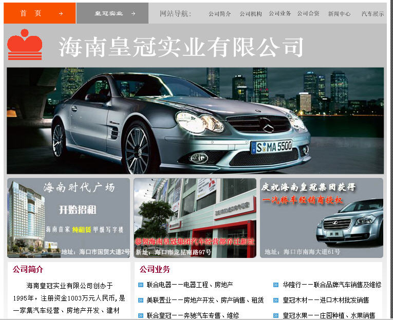 海南皇冠實(shí)業(yè)有限公司創(chuàng)辦于1995年,注冊(cè)資金1003萬元人民幣。海南皇冠公司是一家集汽車經(jīng)營(yíng)、房地產(chǎn)開發(fā)、建材供應(yīng)、水果種植銷售、礦產(chǎn)品開采加工于一體的多元化經(jīng)營(yíng)的集團(tuán)企業(yè)。海南皇冠實(shí)業(yè)有限公司是海南省百強(qiáng)企業(yè)。